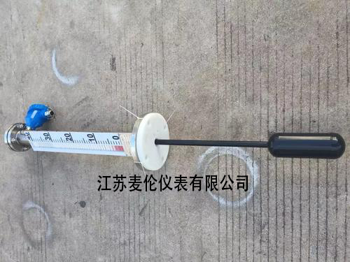 顶装磁性翻板液位计是一种安装在容器顶部的安装方法。它非常适用于一些地下储罐,或侧面开孔不方便的容器,或被测液体介质粘度高,因此不容易使用侧装式液位计等。从其原理出发,磁翻板是显示面板的主要部分。磁耦合原理使显示面板中的活门旋转并显示液位。根据浮力原理,浮子随着测量管中液位的上升和下降而上下移动。浮子中的永磁钢为驱动红,白色翻柱,通过磁耦合旋转180°。液位上升时,翻柱由白变红,下降时由红变白,实现液位指示。