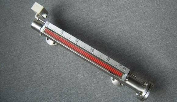 当测量容器内液位上升或下降时,液位计本体管内的磁浮子也会上升或下降,浮子内的永磁钢通过磁耦合传递到磁柱指示器上,使红色和白翻柱在磁力作用下转动180度°, 当液位上升时,倾翻柱由白色变为红色。