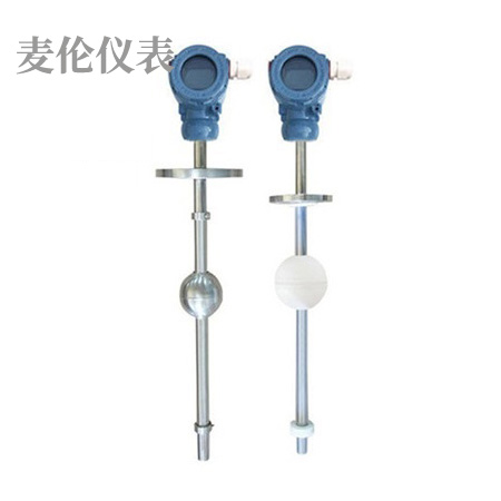 浮球液位计故障怎么解决:大角度浮球;浮球液位计的设计原理和特点主要由浮球机构、法兰、中心轴、散热总成、平衡锤机构、万向节机构、传动机构等组成,用于测量低温电阻、高黏稠介质、液位变化、浮球随浮力变化时,其变化通过杠杆和中间轴传递到电阻传感器,通过电路模块的处理,转换成与液位变化线性的4~20mA电流信号输入。一般情况下,普通浮球液位计受摆角支点位置和装置颈部直径和长度的限制。Z大工作角为35°,大角度浮球在普通35°角的基础上增加了一套连杆机构设计。支点向前移动后,浮球的工作角度可达到80°,大大增加了液位的测量范围。